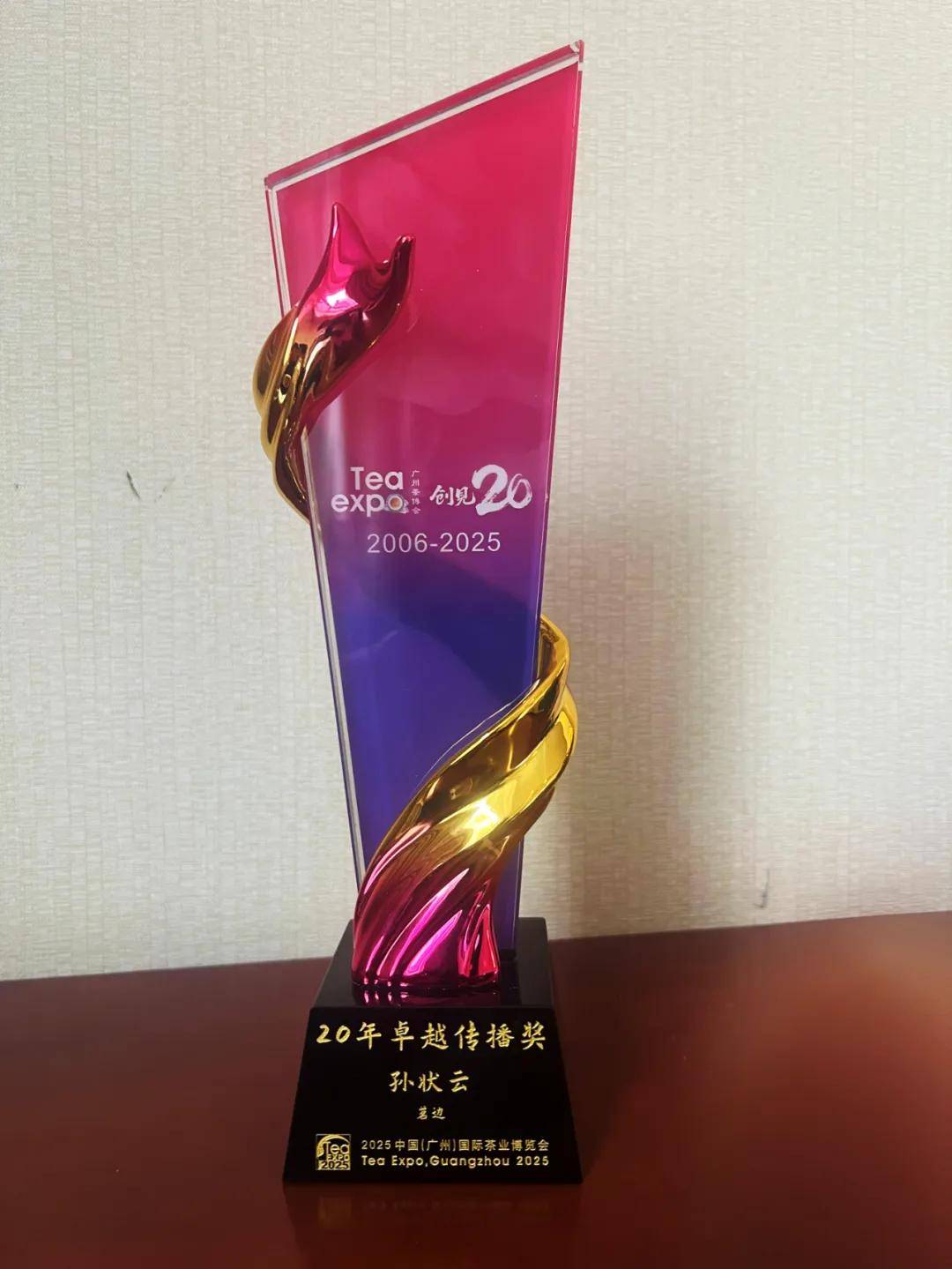 ·广州,2025广州茶博会,《茗边》主编孙状云荣膺广州茶博会20年卓越传播奖。