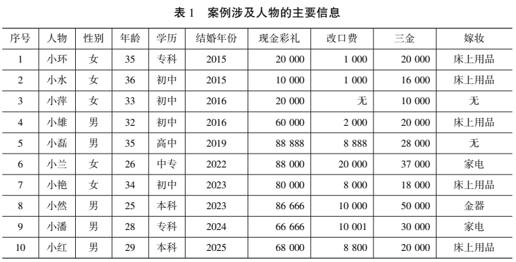 本文选取Z镇2015—2025年的10起婚事来作为案例分析的对象。这种选择主要基于以下原因:一是可以清晰地呈现彩礼数额在十年中的变化情况;二是可将研究视线投射到每一起具体的彩礼支付实践中,对围绕彩礼数额展开的代际、代内互动协商予以呈现,从而更加深入地展现低额彩礼复杂的形成过程。